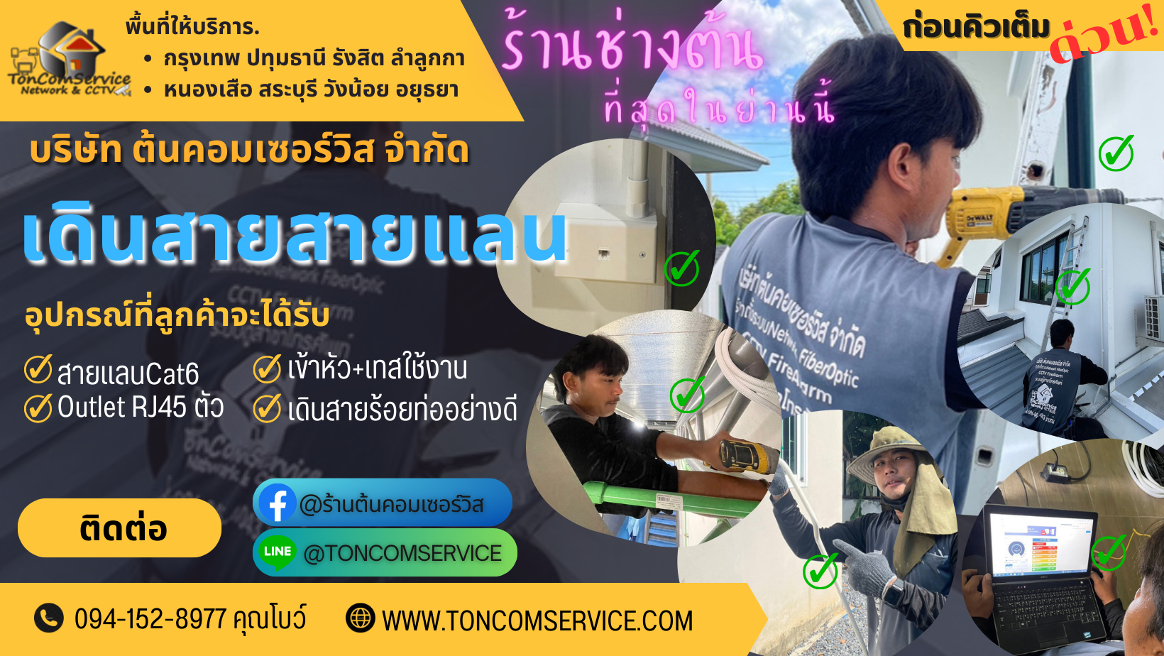⚠️ หากวางระบบแลนด้วยวิธีผิดพลาดหรือจ้างช่างไม่มีประสบการณ์ คุณอาจเจอปัญหาอินเทอร์เน็ตหลุด สัญญาณขาดตอน ใช้งานพร้อมกันแล้วเน็ตช้า เกิด Downtime ซ้ำซาก จนธุรกิจหยุดชะงักและเสียโอกาสทางรายได้ 💻📉 TonComService ช่วยป้องกันปัญหาเหล่านี้ด้วยทีมช่างมืออาชีพ ประสบการณ์จริงกว่า 10 ปี 🔧✅ เราดูแลตั้งแต่วางแผนระบบ วางสาย Testing ทุกจุด และรับประกันงานหลังติดตั้ง — เพื่อให้ธุรกิจคุณออนไลน์ลื่นไหล ไม่มีสะดุดตลอด 24 ชม. 📡💪 อย่าเสี่ยง! ให้ทีมงานมืออาชีพดูแลตั้งแต่วันนี้